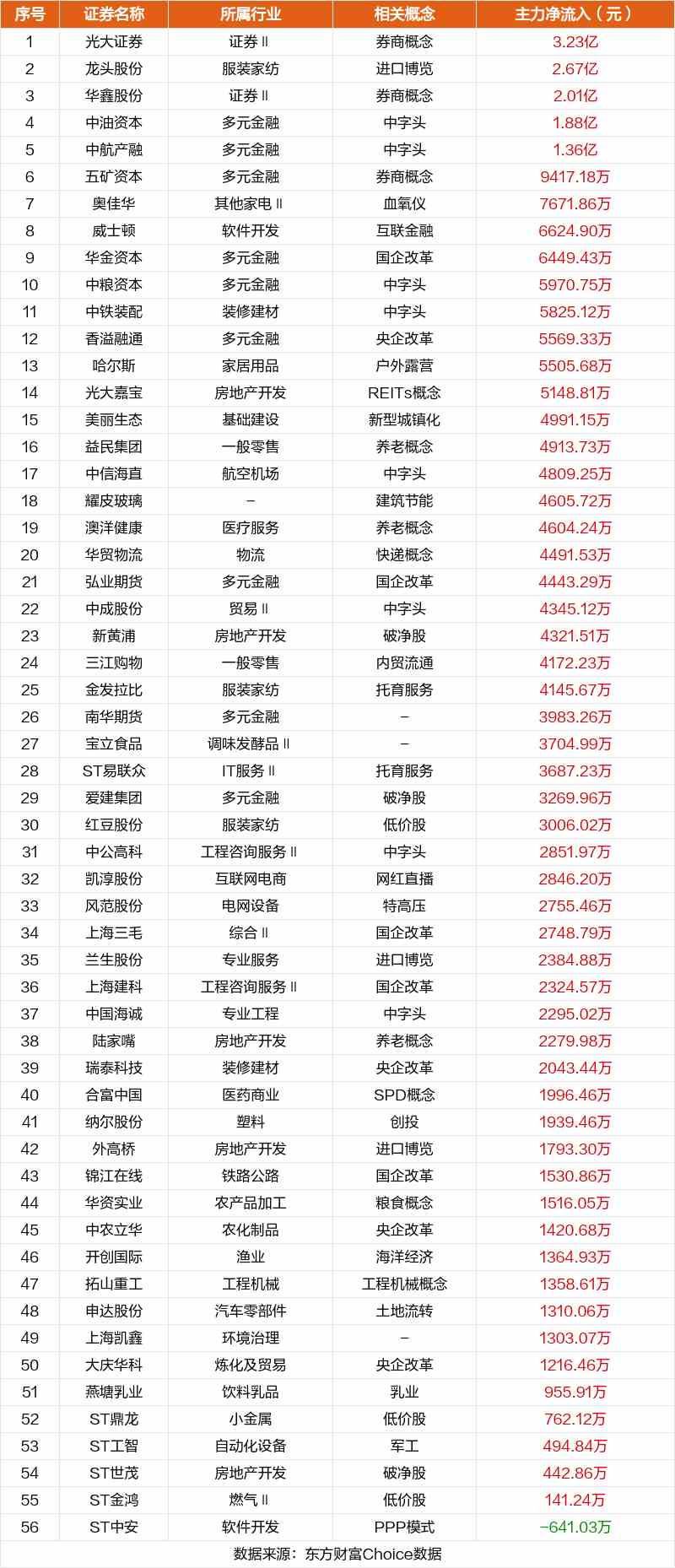 非連板個股方面,光大證券、龍頭股份、華鑫股份主力資金凈流入居前。