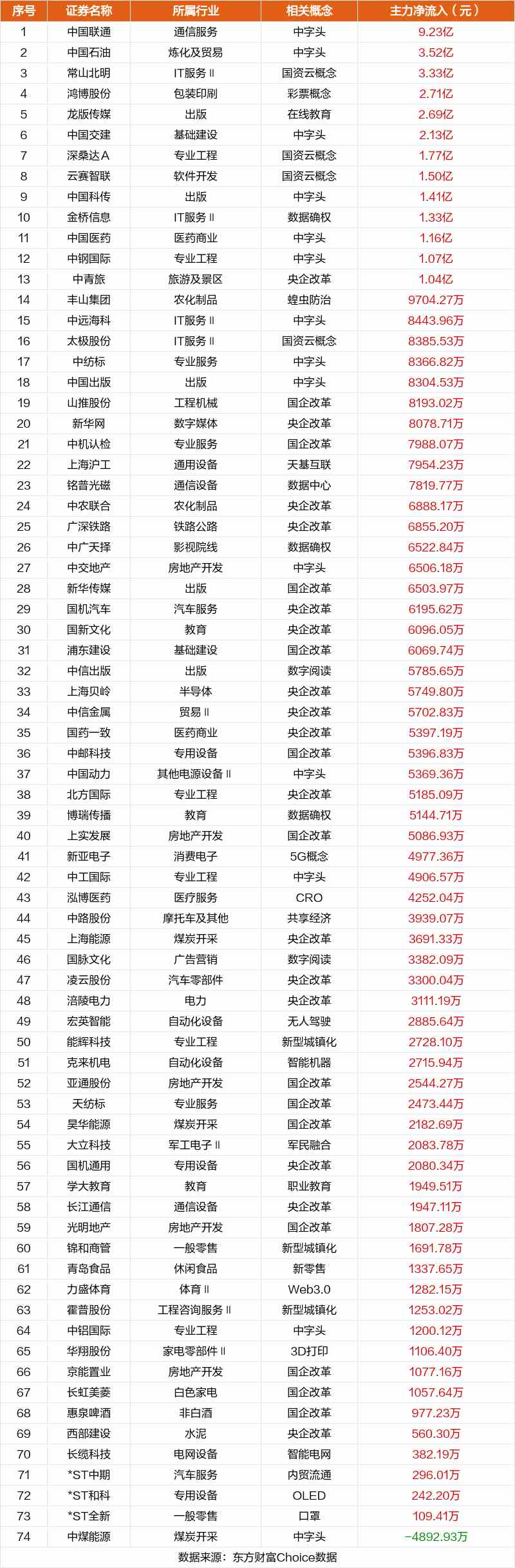 非連板個股方面,中國聯(lián)通、中國石油、常山北明主力資金凈流入居前。