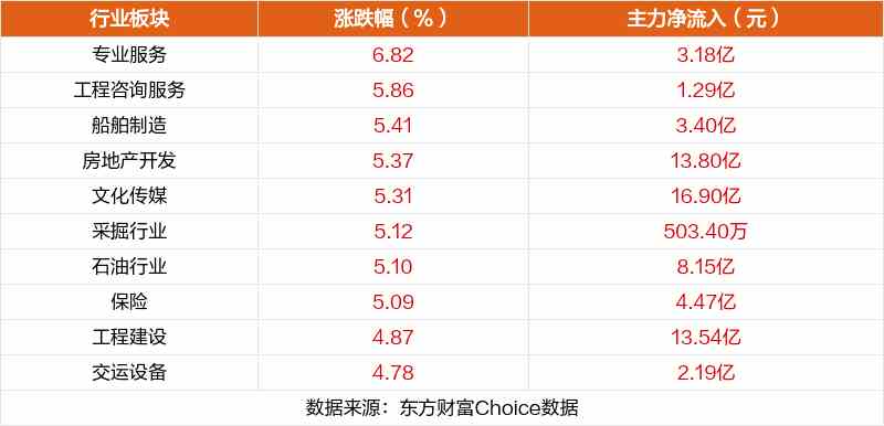 板塊方面,專業(yè)服務(wù)、工程咨詢服務(wù)、船舶制造等板塊漲幅居前。