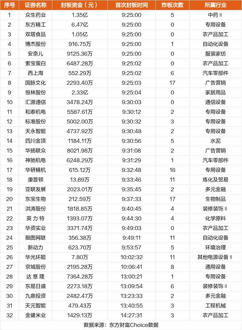從首次封板時(shí)間角度看,今日32只非ST股中,匯源通信、和泰機(jī)電、標(biāo)準(zhǔn)股份等在開(kāi)盤(pán)5分鐘內(nèi)首次觸板。