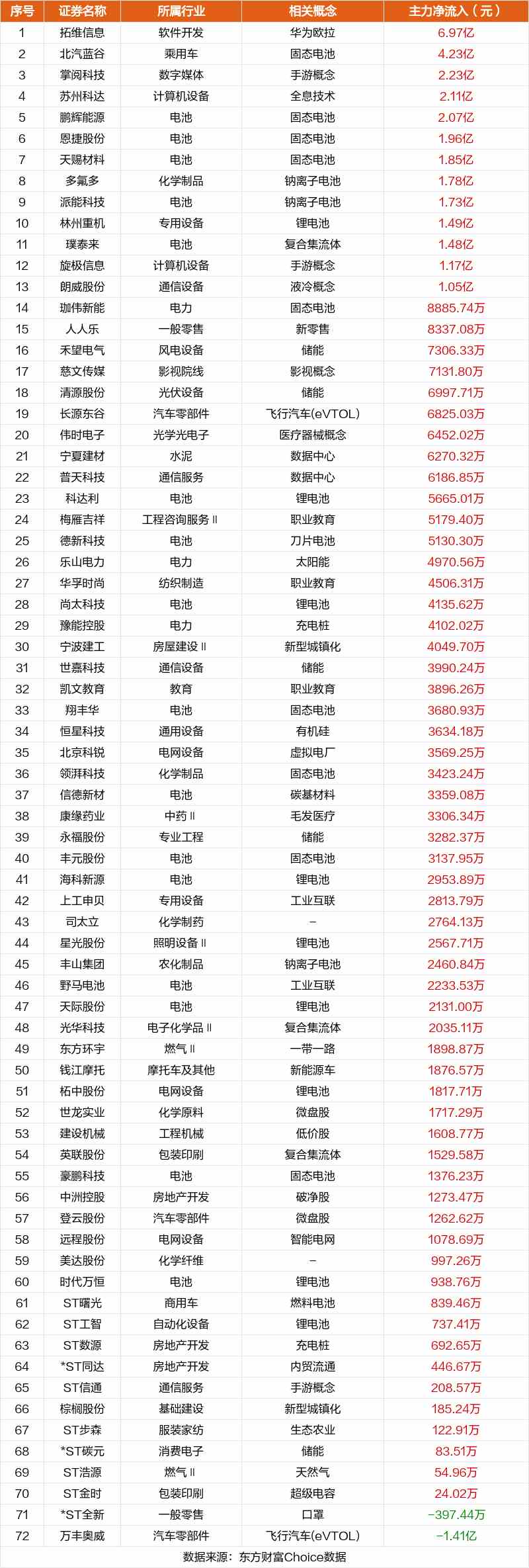 非連板個股方面,拓維信息、北汽藍(lán)谷、掌閱科技主力資金凈流入居前。