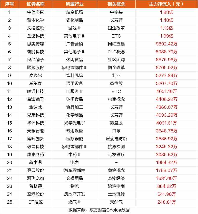 非連板個(gè)股方面,中信海直、雅本化學(xué)、文投控股主力資金凈流入居前。