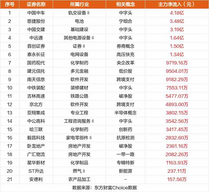 非連板個股方面,中國中車、恩捷股份、中國交建主力資金凈流入居前。