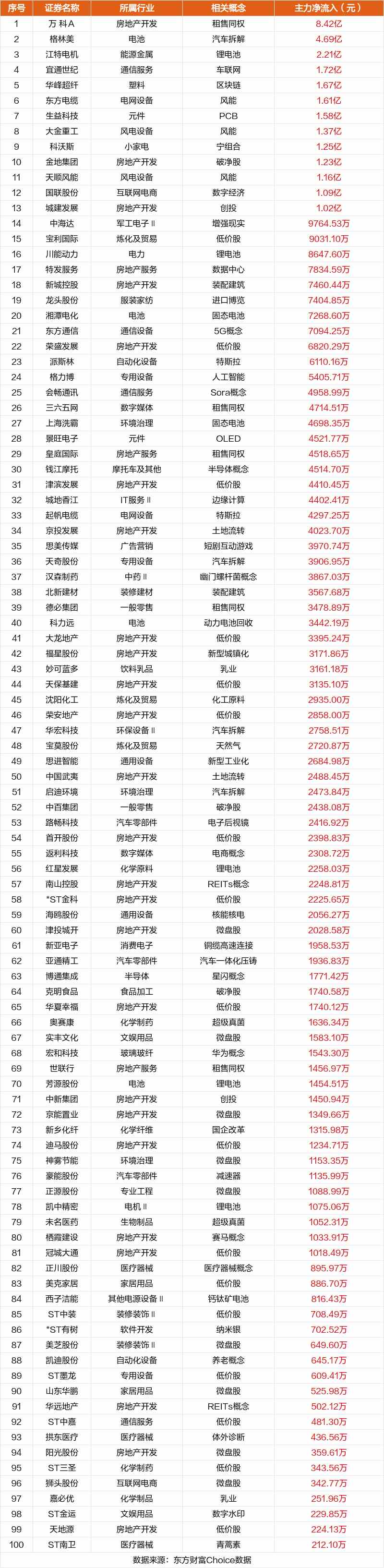 非連板個(gè)股方面,萬(wàn)科A、格林美、江特電機(jī)主力資金凈流入居前。
