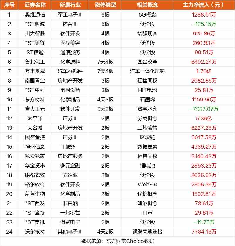 其中,5G概念?yuàn)W維通信6板,低價(jià)股*ST明誠(chéng)5板,增強(qiáng)現(xiàn)實(shí)川大智勝4板。