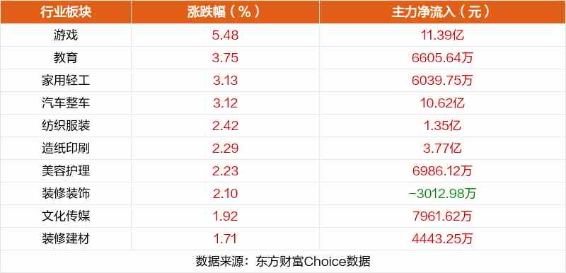 板塊方面,游戲、教育、家用輕工等板塊漲幅居前,公用事業(yè)、煤炭行業(yè)、航運(yùn)港口等板塊跌幅居前。
