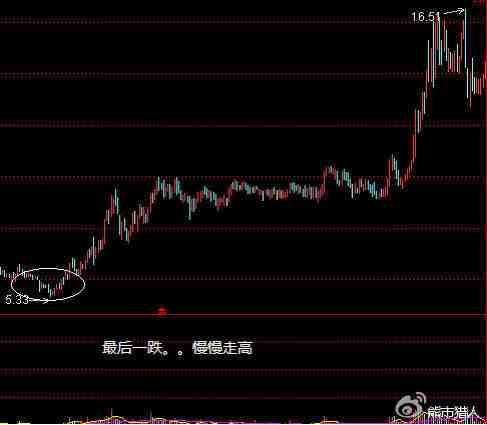 8.實力主力的最后一踹:該方法和低開陽線的區(qū)別在于時間和空間上。從時間跨度上來說最后一踹的方法要比低開陽線的時間跨度長得多,也可能是幾天甚至十幾天。從空間上來說也要大于低開陽線,可能是百分之十幾,甚至有的達(dá)到30%。從主力的魄力上來看也明顯大于其它試盤方法。這種試盤方法資金實力較小和無魄力者禁用,否則會弄巧成拙。必須具備有統(tǒng)吃籌碼魄力的主力方可采用......此方法包含最后一次誘騙籌碼的含義。