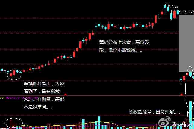出貨是股價上升到高位以后,機(jī)構(gòu)主力利用題材或利好消息,吸引中小投資者進(jìn)場接盤,出貨的結(jié)果與洗盤恰恰相反,出貨會導(dǎo)致市場籌碼由原來的“集中鎖定狀態(tài)”逐漸變?yōu)椤胺稚顟B(tài)”,隨著籌碼的逐漸分散,這就必然會導(dǎo)致盤面“浮動籌碼”的數(shù)量增加,其具體的表現(xiàn)是成交量在較長的時間內(nèi)始終無法萎縮!并且始終保持較為活躍的狀態(tài),盤面浮動籌碼很多,而且消息面會有很多朦朧的題材或利好消息配合