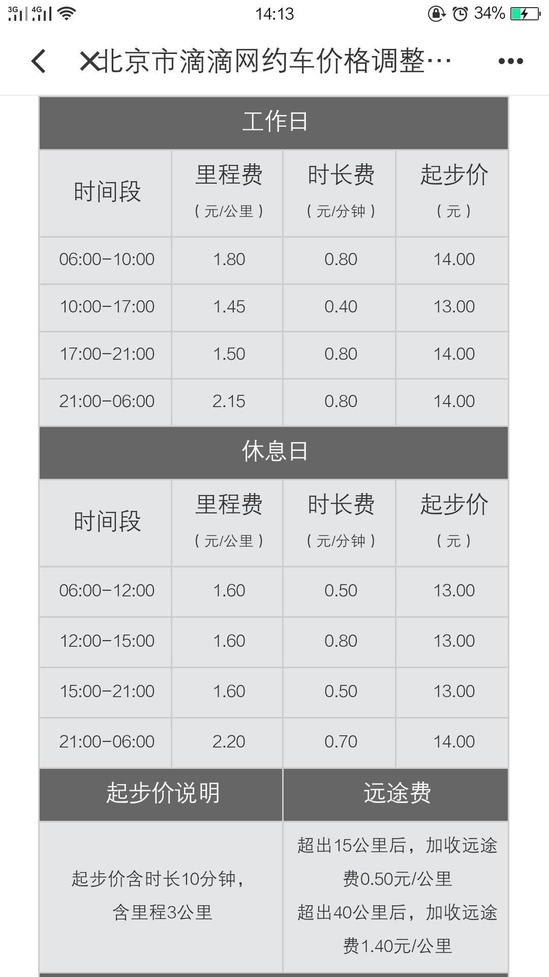 北京市部分區(qū)域快車價(jià)格調(diào)整說(shuō)明截圖來(lái)源:滴滴出行APP