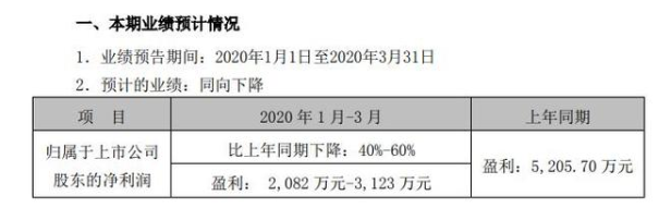 據(jù)了解,業(yè)績預(yù)告期間:2020年1月1日至2020年3月31日。業(yè)績變動(dòng)原因是由于新型冠狀病毒感染肺炎疫情的出現(xiàn)及在全球的爆發(fā),全國各地企業(yè)復(fù)工延緩、海外市場需求暫緩,產(chǎn)品生產(chǎn)、終端銷售及市場推廣等活動(dòng)受到不同程度限制,公司生產(chǎn)經(jīng)營受到一定影響,預(yù)計(jì)2020年第一季度實(shí)現(xiàn)歸屬于上市公司股東的凈利潤在2,082萬元至3,123萬元之間,較上年同比下降。
