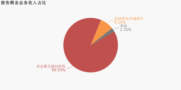 從業(yè)務(wù)結(jié)構(gòu)來看,“安全鉗及提拉機構(gòu)”是企業(yè)營業(yè)收入的主要來源。具體而言,“安全鉗及提拉機構(gòu)”營業(yè)收入為3.1億,營收占比為89.6%,毛利率為35.5%。