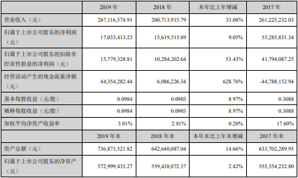 挖貝網(wǎng) 4月10日消息,廣哈通信(300711)近日發(fā)布2019年年度報(bào)告,2019年公司營(yíng)業(yè)收入267,116,574.91元,同比增長(zhǎng)33.08%,實(shí)現(xiàn)歸屬于上市公司股東的凈利潤(rùn)17,033,413.23元,同比增長(zhǎng)9.05%;實(shí)現(xiàn)基本每股收益0.0984元,上年同期為0.0903元。