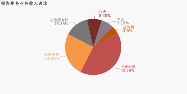 從業(yè)務結構來看,“中置電機”是企業(yè)營業(yè)收入的主要來源。具體而言,“中置電機”營業(yè)收入為4.9億,營收占比為40.8%,毛利率為51.4%。