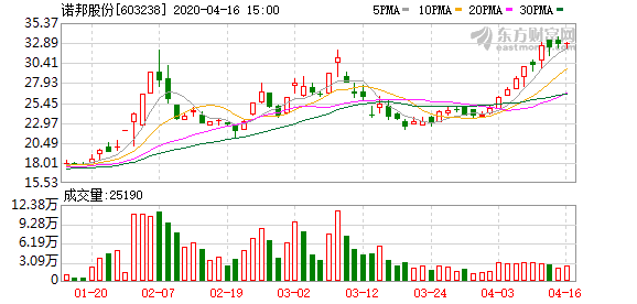 諾邦股份:2019年凈利潤同比增長49% 擬10派2.5元
