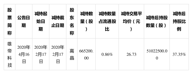 雄帝科技,減持