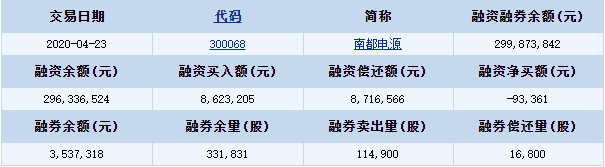 南都電源(300068)融資融券信息(04-23)