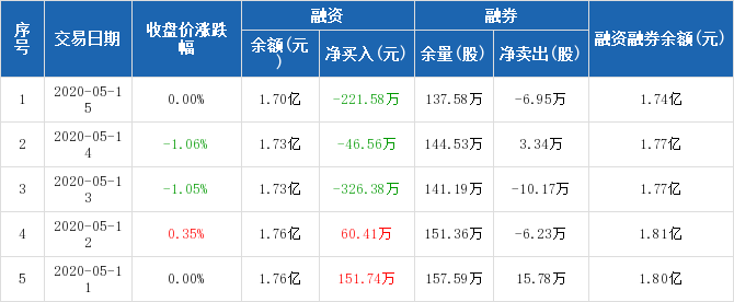 融資方面,當日融資買入178.74萬元,融資償還400.32萬元,融資凈償還221.58萬元,連續(xù)3日凈償還累計594.53萬元。融券方面,融券賣出11.13萬股,融券償還18.08萬股,融券余量137.58萬股,融券余額385.22萬元。融資融券余額合計1.74億元。