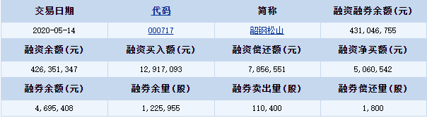 摘要: 韶鋼松山(000717)2020-05-14融資融券信息顯示。