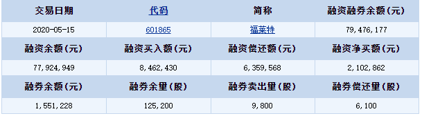 福萊特(601865)融資融券信息(05-15)