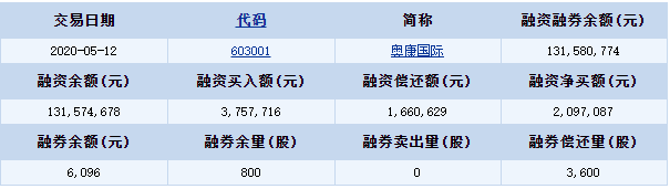 摘要: 奧康國際(603001)2020-05-12融資融券信息顯示。