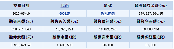 摘要: 鐵龍物流(600125)2020-05-19融資融券信息顯示。