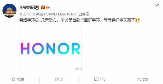 摘要: 10月27日消息,數(shù)碼博主@長安數(shù)碼君今日爆料稱,榮耀手環(huán)6將于近日內(nèi)發(fā)布,有望成為首款全面屏手環(huán)。