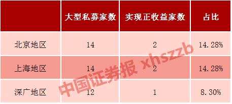 北京地區(qū)的14家大型私募中,僅有2家私募的產(chǎn)品平均收益取得正收益,且都在1%以下,平均虧損超過5%的有4家,其中一家虧損接近10%。
