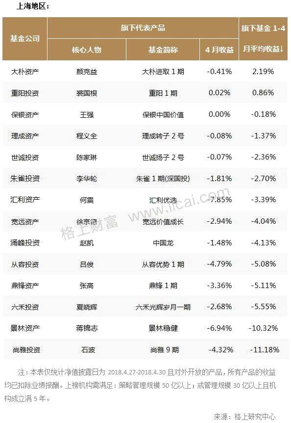 今年以來,A股震蕩不斷,相比去年,大型私募也從去年的百花齊放進(jìn)入寒潮時(shí)期。格上財(cái)富數(shù)據(jù)顯示,今年1-4月絕大部分知名私募的投資代表產(chǎn)品都出現(xiàn)不同程度虧損,取得正收益的全國只有5家。