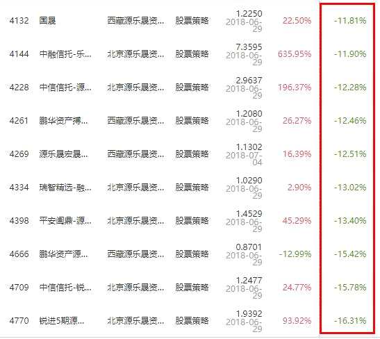 值得注意的是,源樂晟資產(chǎn)業(yè)績極為慘淡,最新數(shù)據(jù)顯示旗下產(chǎn)品收益全部為負(fù),總計(jì)19只產(chǎn)品收益率超過-10%。