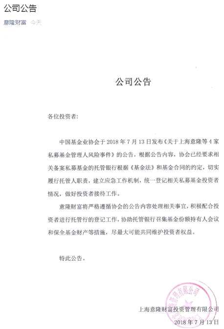 中基協(xié)通報(bào)四家私募風(fēng)險(xiǎn)事件 意隆財(cái)富回應(yīng)
