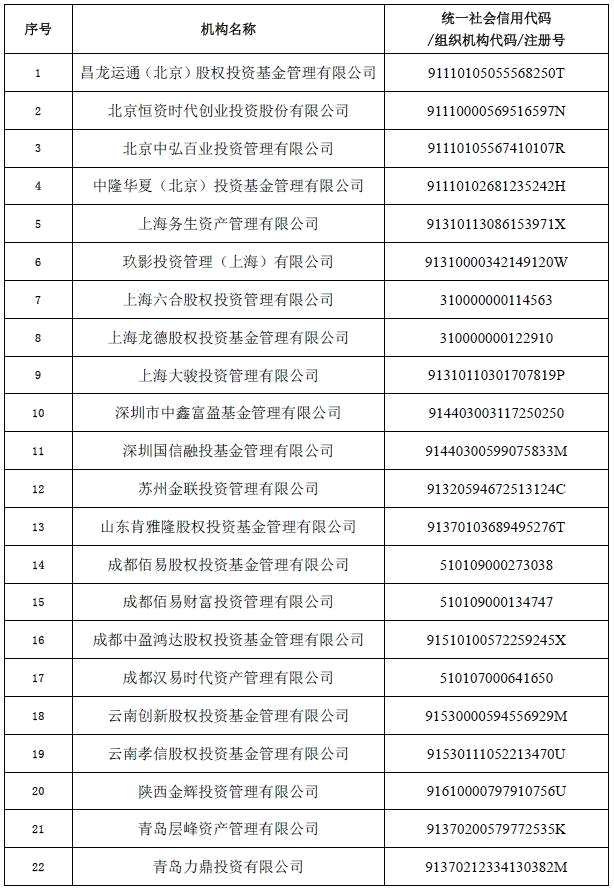 中基協(xié):注銷昌龍運通等22家失聯(lián)機構私募