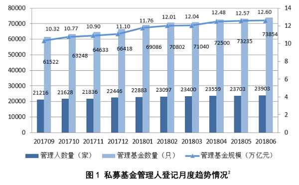 根據(jù)中國基金協(xié)會會長洪磊對外透露的數(shù)據(jù)顯示,從2014年底至2018年6月底,中國私募基金取得了顯著的發(fā)展,私募管理規(guī)模從2.38萬億元增至12.60萬億元,增長429%。私募管理人從7358家增至23903家,增長224%。