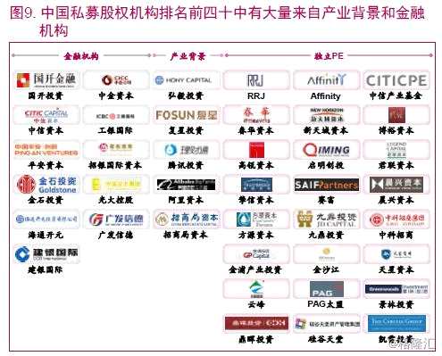 家。在領(lǐng)先的私募股權(quán)機構(gòu)中,有很多來自產(chǎn)業(yè)背景或為金融機構(gòu)。他們往往都使用自有資金或金融業(yè)務(wù)沉淀資金進行投資(見圖9)。這類企業(yè)通常會設(shè)立直投部,并將股權(quán)投資作為一個盈利單元。而在美國,私募行業(yè)領(lǐng)先者大多為獨立的PE