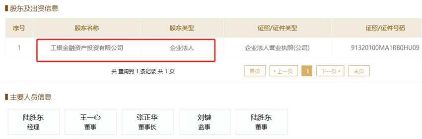 工商注冊登記信息顯示,中銀資產(chǎn)基金管理有限公司法定代表人為李盛,他也是中銀金融資產(chǎn)投資的執(zhí)行董事、總經(jīng)理。中銀資產(chǎn)基金管理有限公司由中銀金融資產(chǎn)投資有限公司100%控股,中銀金融資產(chǎn)投資有限公司是中國銀行成立的實(shí)施債轉(zhuǎn)股的全資子公司。