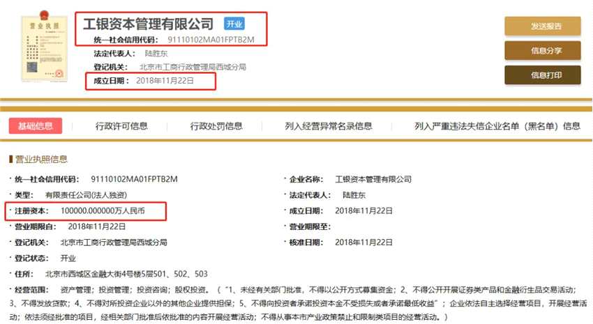 基金君查詢工商注冊信息發(fā)現(xiàn),工銀資本管理有限公司成立于2018年11月22日,注冊資本金為10億元人民幣。公司經(jīng)營范圍是資產(chǎn)管理、投資管理、投資咨詢、股權(quán)投資等。公司法定代表人為陸勝東,陸勝東是工銀投資的副總裁,也是工銀資本的董事和經(jīng)理;同時(shí),工銀資本的董事長是工銀投資總裁張正華。