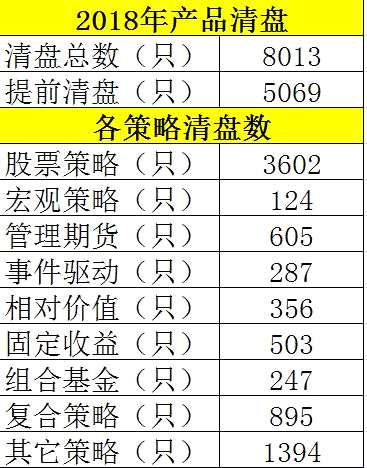 在2018年這個股市寒冬中,不少的私募基金凈值大跌,產(chǎn)品清盤數(shù)量也創(chuàng)出新高。2018年,私募基金清算產(chǎn)品數(shù)量累計達(dá)8013只,其中提前清盤5069只。