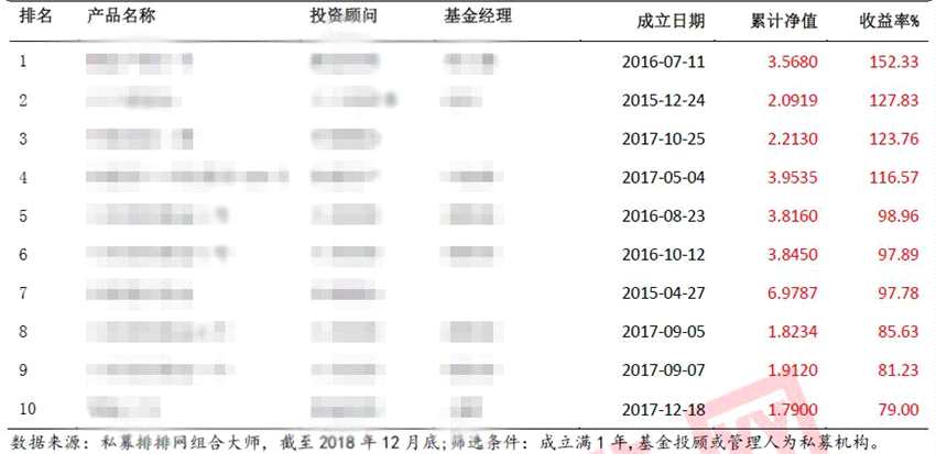 摘要: 私募基金行業(yè)2018年投資業(yè)績(jī)近日出爐。第三方統(tǒng)計(jì)機(jī)構(gòu)的最新統(tǒng)計(jì)數(shù)據(jù)顯示,在A股整體市況較為慘淡的2018年,坐在股票策略私募業(yè)績(jī)“頭把交椅”的產(chǎn)品,全年收益率依然高達(dá)152.33%;排名前十位的股票