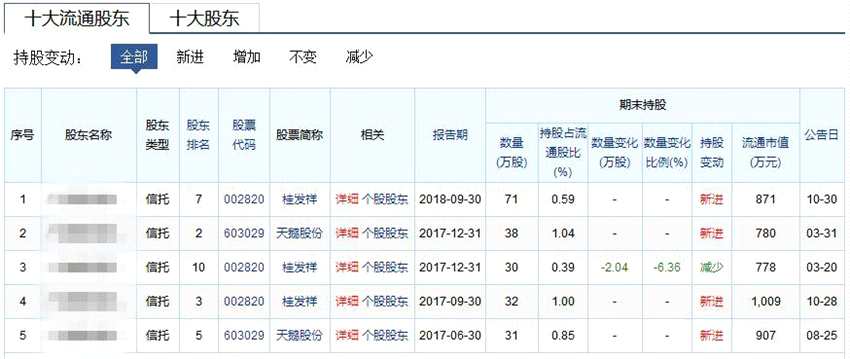 在A股上市公司前十大流通股東的進(jìn)出情況