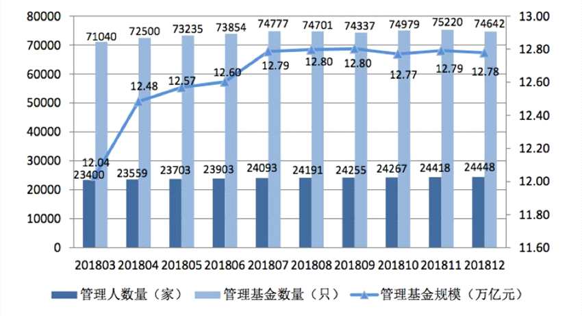 根據(jù)中國證券投資基金業(yè)協(xié)會(huì)數(shù)據(jù)顯示,截至2018年底,協(xié)會(huì)已登記私募基金管理人24448家,同比增長8.92%;已備案私募基金7.46萬只,同比增長12.38%;管理基金規(guī)模達(dá)12.78萬億元,同比增長15.12%;私募基金管理人員工總?cè)藬?shù)24.57萬人,同比增長3.12%。不過,私募數(shù)量與規(guī)模的快速增長也讓私募機(jī)構(gòu)面臨很大的競爭壓力。