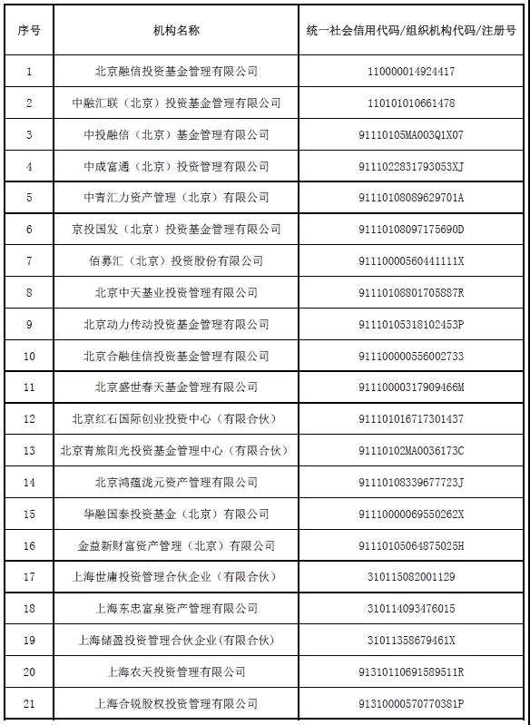 日前,中國基金業(yè)協(xié)會(以下簡稱中基協(xié))公告了第八批因公示期滿三個月且未主動聯(lián)系協(xié)會,而被協(xié)會注銷的失聯(lián)私募機構。北京融信投資基金管理有限公司等98家機構達到注銷條件。