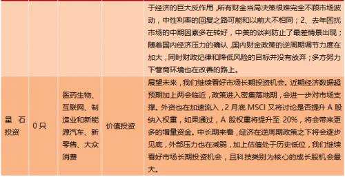 1月A股大幅上漲反彈,對2019年逆周期的政策做出正面回應(yīng),國內(nèi)流動(dòng)性及政策支撐得到驗(yàn)證。外部風(fēng)險(xiǎn)仍存,美國經(jīng)濟(jì)增速回落,美聯(lián)儲政策仍在觀望區(qū)間。外資大量涌入A股市場,投資者情緒上漲,中美貿(mào)易戰(zhàn)有緩和的跡象,當(dāng)前國內(nèi)各方面均處于較為樂觀的狀況。