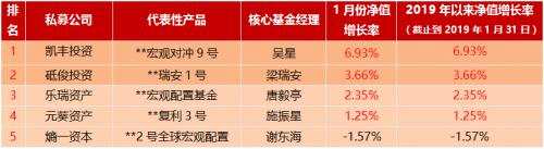 進(jìn)入大唐財(cái)富白名單觀察池中宏觀對沖策略的私募管理人有5家,分別有:熵一資本、樂瑞資產(chǎn)、凱豐、元葵和砥俊投資。2019年以來的宏觀策略產(chǎn)品整體表現(xiàn)一般,不同機(jī)構(gòu)間差異較大,其中表現(xiàn)較好的是凱豐投資,2019年以來收益率為6.93%,主要得益于在股票端配置了較高倉位,期貨市場1月份的表現(xiàn)也可圈可點(diǎn)。