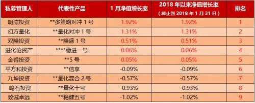 上海地區(qū)中,大禾投資今年以來收益率最高,截止到1月31日凈值增長率為26.55%,收益來源于選股策略并集中持有。信璞投資和少數(shù)派投資的收益率為12.09%和11.12%,分別排在二、三位。