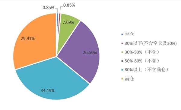 調(diào)查的具體倉(cāng)位來看,目前有29.91%的私募正處于滿倉(cāng)狀態(tài),超過90%的私募基金處于5成倉(cāng)或者5成倉(cāng)以上,而處于空倉(cāng)觀望狀態(tài)的私募基金僅僅只有不到1%。由此可見,處于高倉(cāng)位的私募在近期出現(xiàn)了大幅增長(zhǎng),但相比于牛市時(shí)期80%以上的平均倉(cāng)位而言,還有將近5個(gè)百分點(diǎn)的距離,說明目前私募還存在相對(duì)較大的加倉(cāng)空間。