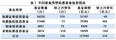 具體來看,截至3月底,已備案私募證券投資基金36235只,基金規(guī)模2.11萬億元、較2月減少45.32億元;私募股權(quán)投資基金27468只,基金規(guī)模7.92萬億元、較2月增加445.57億元;創(chuàng)業(yè)投資基金6831只,基金規(guī)模0.94萬億元、較2月增加72.96億元;其他私募投資基金4814只,基金規(guī)模1.82萬億元、較2月減少262.85億元。