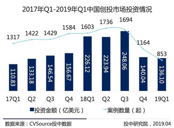 據(jù)投中數(shù)據(jù),今年一季度創(chuàng)投市場融資案例數(shù)量降至2017年以來最低位。具體來看,過去三個(gè)月的融資案例數(shù)量共計(jì)853起,同比下降46.79%;融資總規(guī)模達(dá)136.1億美元,同比下降39.81%;融資規(guī)模在上億美元級別大額交易案例21起,同比減少30%。
