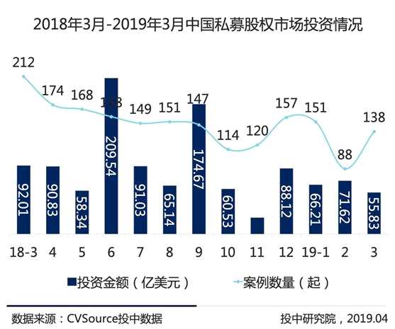 具體來看,今年3月,私募股權(quán)市場投資案例數(shù)量共計(jì)138起,同比下降34.91%;融資總規(guī)模達(dá)55.83億美元,同比下降39.32%;融資均值達(dá)4045.65萬美元,同比下降6.78%;億美元級別大額交易案例12起。
