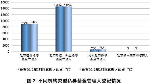 截至2019年3月底,已登記私募證券投資基金管理人8934家,較上月減少31家;私募股權(quán)、創(chuàng)業(yè)投資基金管理人14669家,較上月增加22家;其他私募投資基金管理人755家,較上月減少10家;私募資產(chǎn)配置類管理人3家。