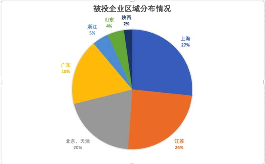 從被投企業(yè)地區(qū)分布來看,上海、江蘇、廣東和北京、天津仍是機構(gòu)偏愛的區(qū)域。