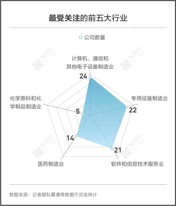 統(tǒng)計(jì)數(shù)據(jù)顯示,計(jì)算機(jī)、通信和其他電子設(shè)備制造業(yè)的公司在受理名單中占比最大,涵蓋了半導(dǎo)體、芯片以及物聯(lián)網(wǎng)服務(wù)等24家企業(yè)。